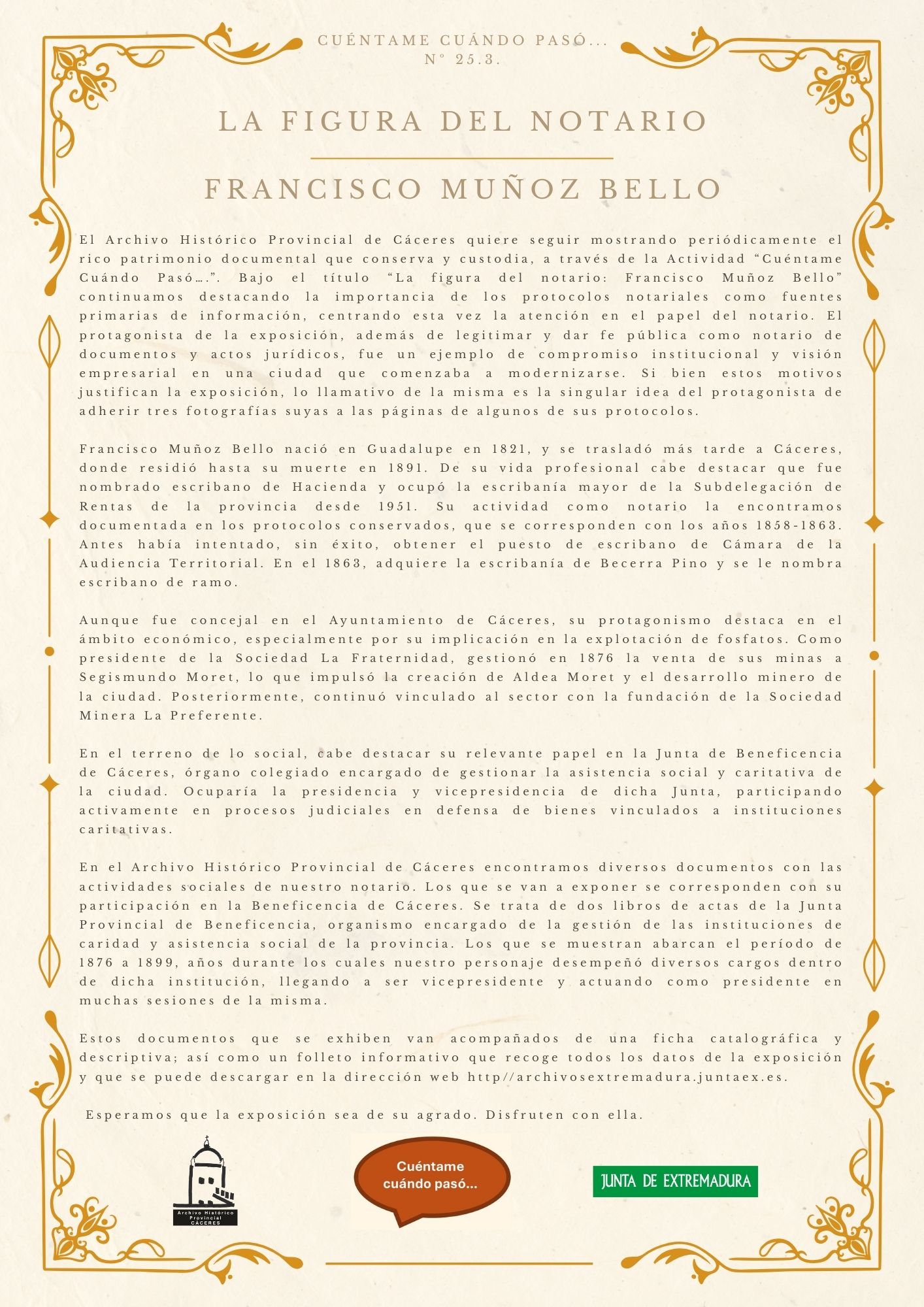 Continuamos con la figura del notario Francisco Muñoz Bello en una nueva exposición de nuestro Cuéntame cúando pasó....